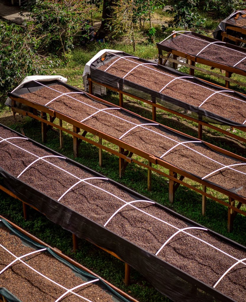 Se realizan tres tipos de procesos: lavado, honey y natural. El secado mayormente al sol en camas africanas, bastidores, y en patios de concreto.