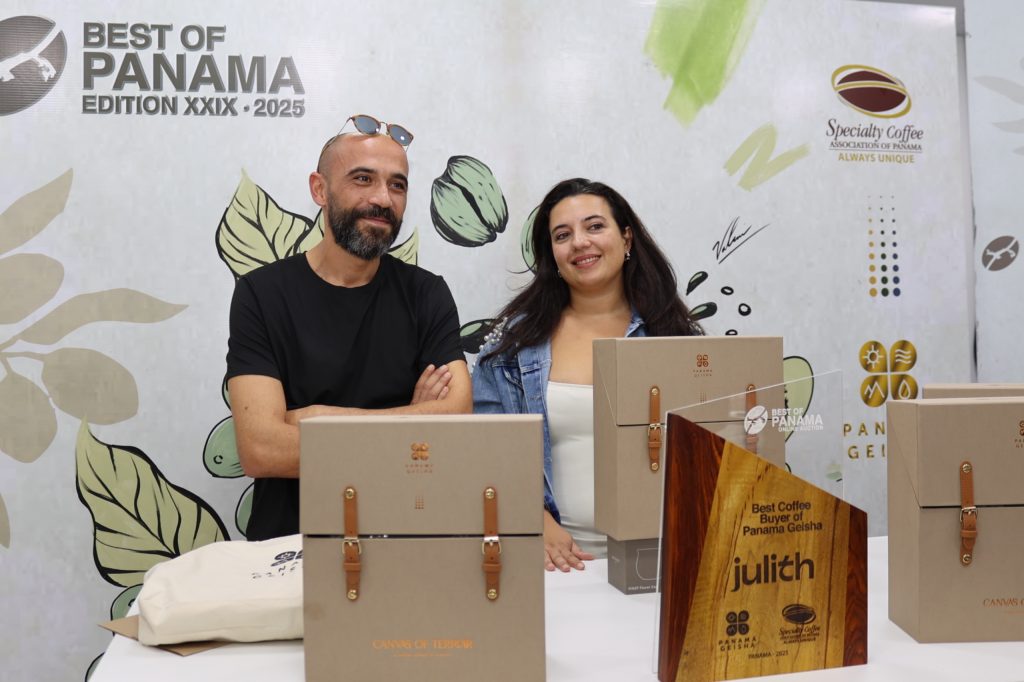 Durante la entrega del lote, la SCAP otorgó un reconocimiento y un certificado a los representantes de Julith Coffee, con los sellos distintivos del Panama Geisha y del Best of Panama 2025.